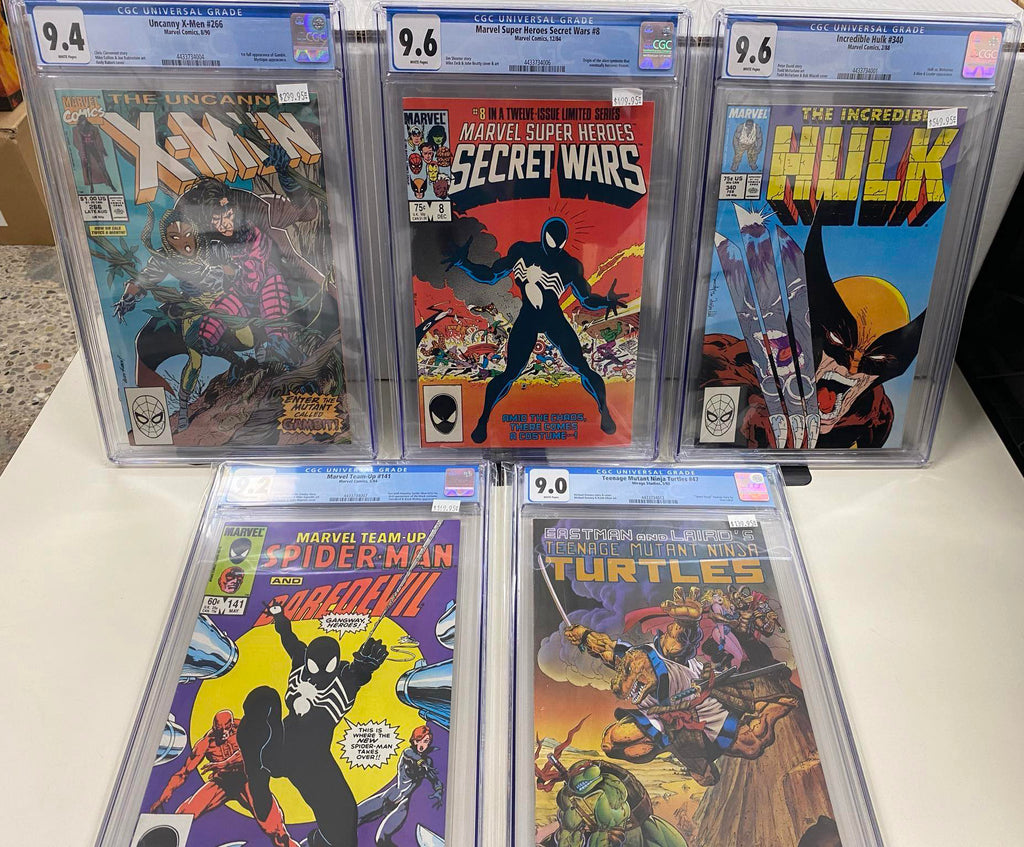 - CGC graded comics including TMNT, X-Men, Secret Wars, Incredible Hulk