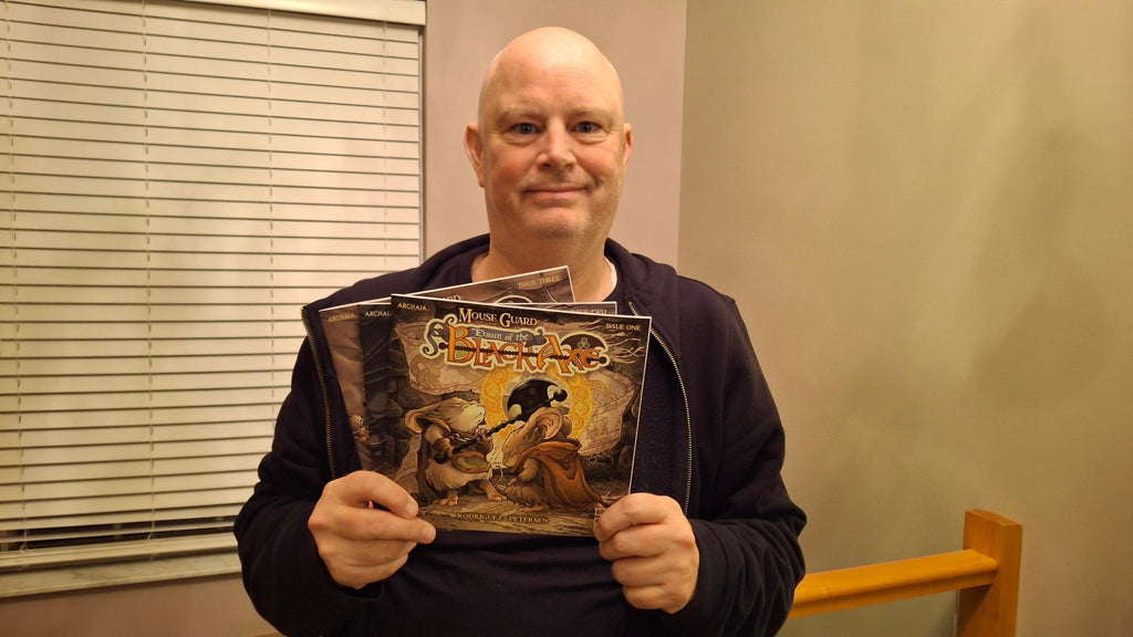 As Mouse Guard fans know, Petersen is the Michigan writer/artist who originated the idea of a medieval mouse society protected by the members of the Guard, forest rangers who serve to keep the far-flung mouse communities safe.