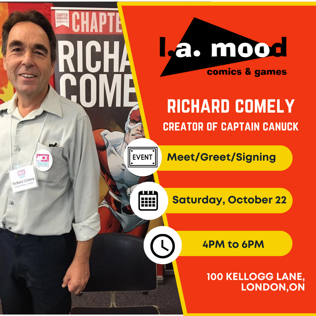L. A. Mood’s is pleased to present Richard Comely, creator of Captain Canuck on Saturday, October 22 from 4-6PM for a Meet/Greet/Signing at our store at 100 Kellogg Lane.