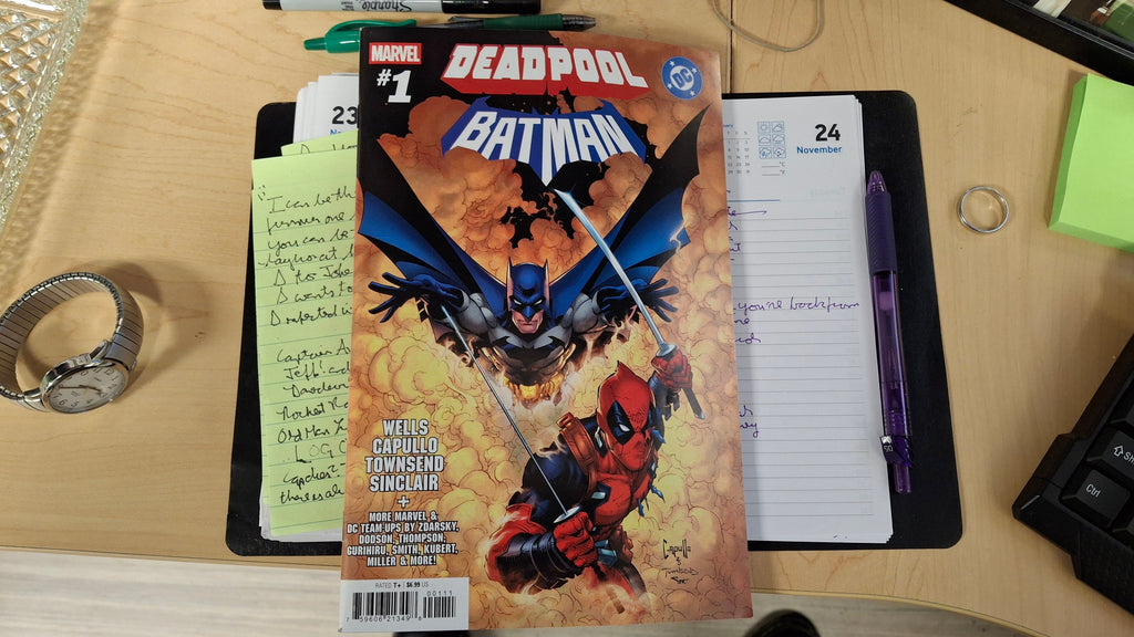 Deadpool/Batman is the latest comic-industry crossover. It shows what happens when the Merc With a Mouth (a Marvel character) crashes into the world of Batman (a DC creation).
