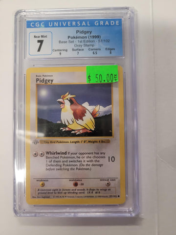 Pidgey Pokemon Base Set 1999 1st ed Grey Stamp CGC 7