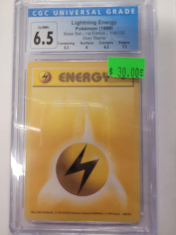Lightning Energy Pokemon Base Set Gray Stamp CGC 6.5