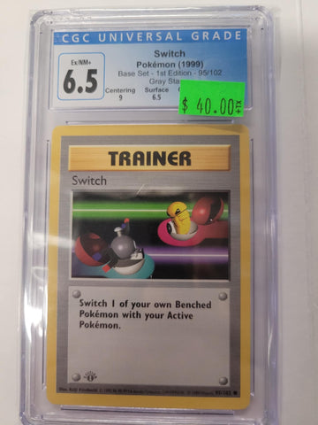 Switch Pokemon Base Set 1999 1st ed Grey Stamp CGC 6.5