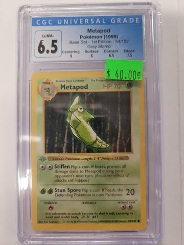 Metapod Pokemon Base Set 1999 1st ed Grey Stamp CGC 6.5